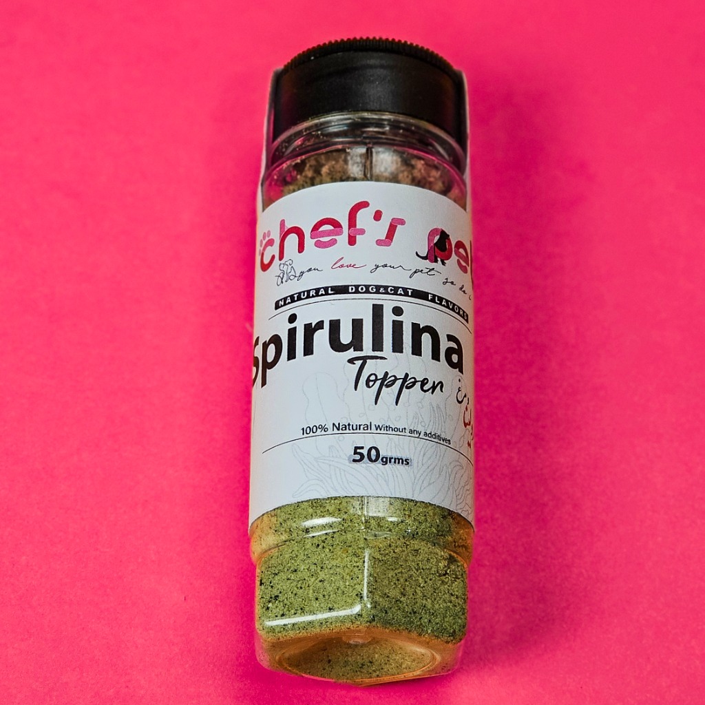 برای استفاده از چاشنی اسپیرولینا، میتوانید آن را به مقدار مناسب به غذای روزانه سگ یا گربه خود اضافه کنید.